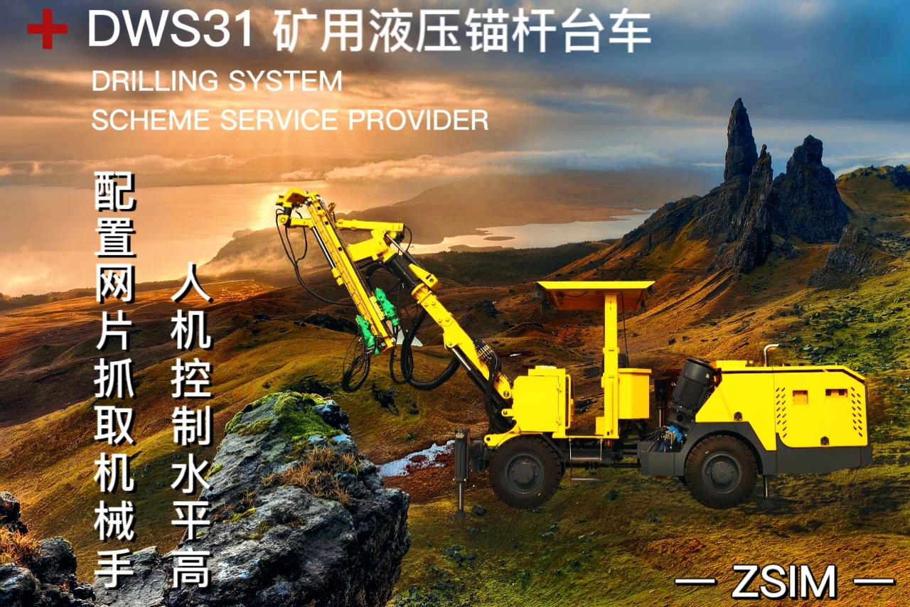 DWS31矿用液压锚杆台车配置网片抓取机械手,人机控制水平高,使得操作轻松实现挂网、钻孔、塞杆机械化作业。自动化安装锚杆,确保锚杆支护高效、质量稳定,经久耐用,提高矿山生产的安全性。